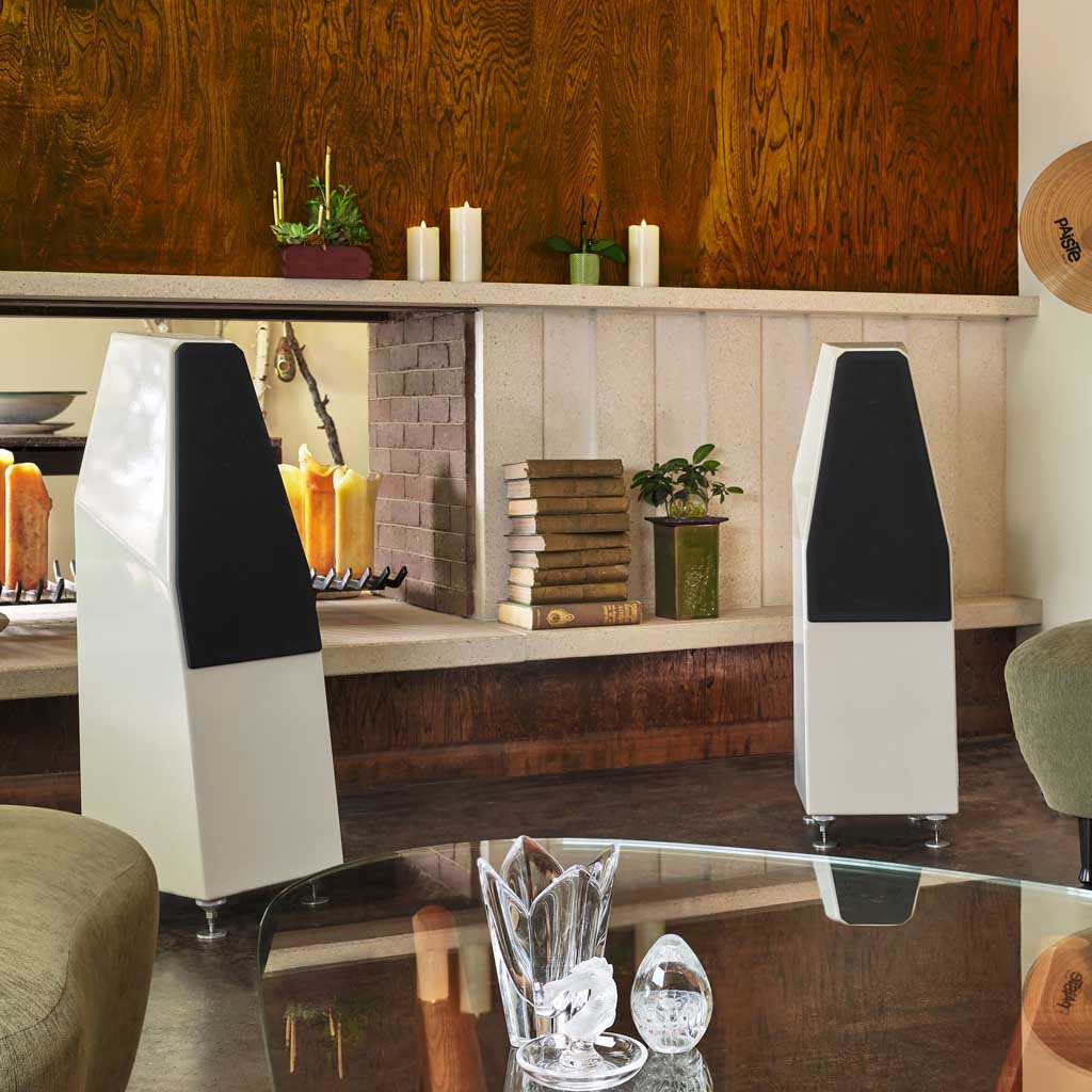 The home houses speakers from Wilson Audio in nearly every room. A closer look will reveal that these are the spectacular Sabrina X models. The speakers are positioned so that when turned on, they invite complete focus on the music. When in combination with the white interiors, you won't be able to imagine another set of speakers that blend in as perfectly.