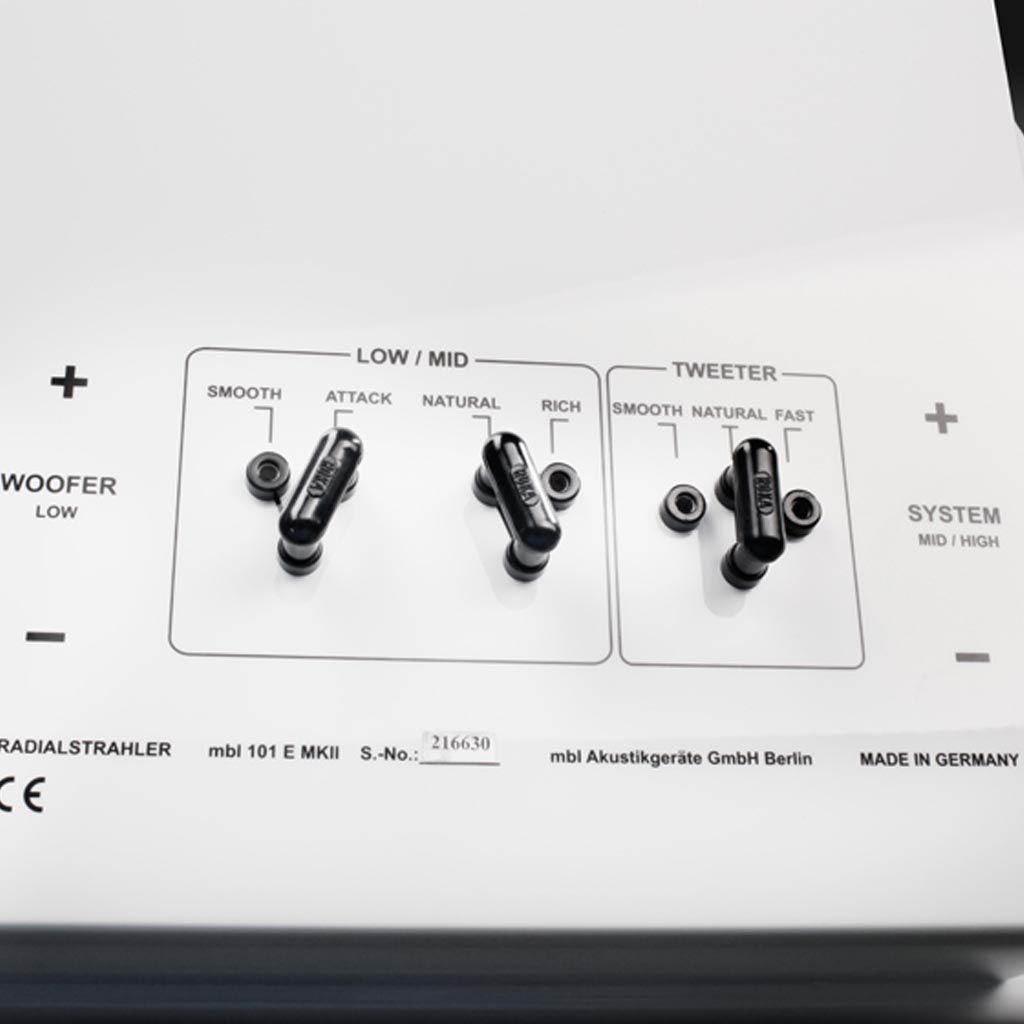 A 4-way system, the 101 E MKII incorporates a powerful 12-inch down-firing aluminum subwoofer in a bandpass enclosure for deep, articulate bass. Its massive, sculptural cabinet reflects meticulous craftsmanship and provides critical acoustic stability. The loudspeaker offers passive tuning options to fine-tune its response to different room acoustics and listener preferences.