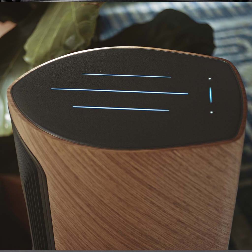 Inherited from its predecessor, Omnia, SENSO™ is the leather top panel that allows the user to control and set up the speaker functions, such as volume, input selection, and connections. The buttonless interface allows users to pilot the playback and connection functions through simple finger swipe.