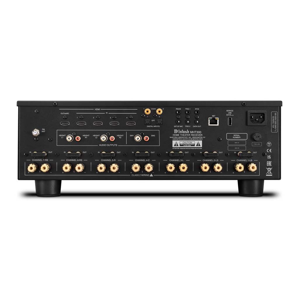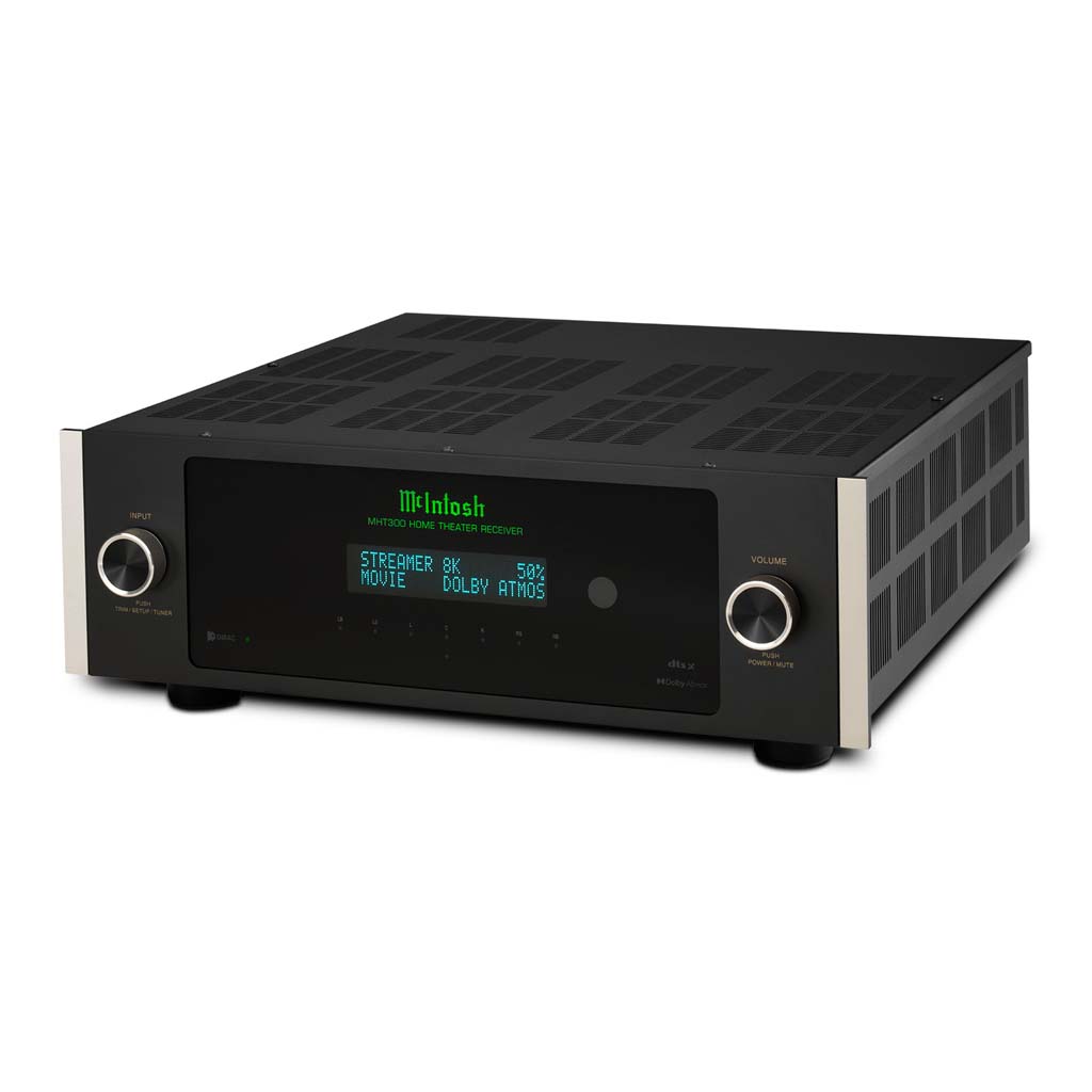 The McIntosh MHT300 Home Theater Receiver offers an uncompromising integrated solution for premium home cinemas. It features 7 channels of amplification, delivering 120 Watts into 8 Ohms or 150 Watts into 4 Ohms to all channels simultaneously. Capable of processing 7.2.4 immersive audio, it supports Dolby Atmos, DTS:X, and Auro-3D.