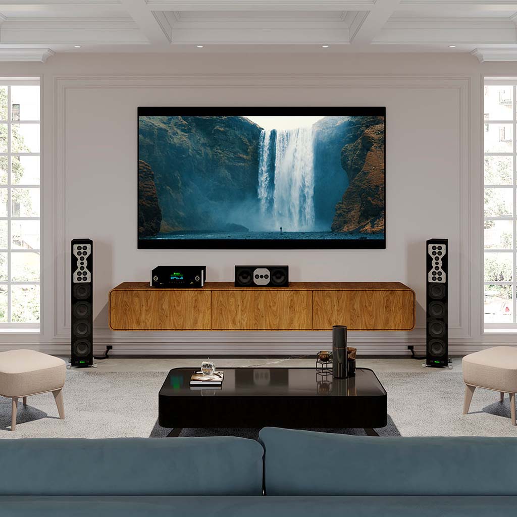 Equipped with HDMI 2.1, the MHT300 handles 8K/60Hz and 4K/120Hz video, along with HDR10+, Dolby Vision, and HLG. Advanced Dirac Live® Room Correction optimizes acoustics. Classic McIntosh aesthetics, including a black glass front panel and polished stainless steel chassis, combine with Power Guard® and Sentry Monitor™ for robust protection. With extensive pre-outs for expansion, the MHT300 delivers powerful, precise audio and video for an ultimate home theater experience.