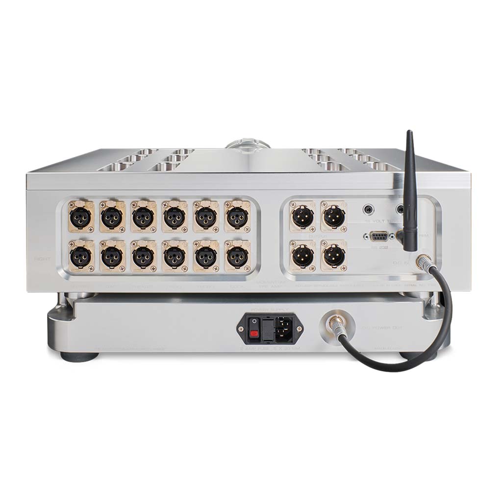 Volume is controlled by a precise optical resistor network, offering pristine signal integrity. Connectivity includes six balanced XLR inputs and two balanced XLR outputs. An advanced Bluetooth remote provides extended range and eliminates line-of-sight issues, while the iconic front-panel meter displays volume and status. Housed in a stunning, precision-machined aluminum chassis with signature copper accents, the Momentum HD Preamplifier delivers a musical experience of striking clarity, richness, and dynamic realism.
