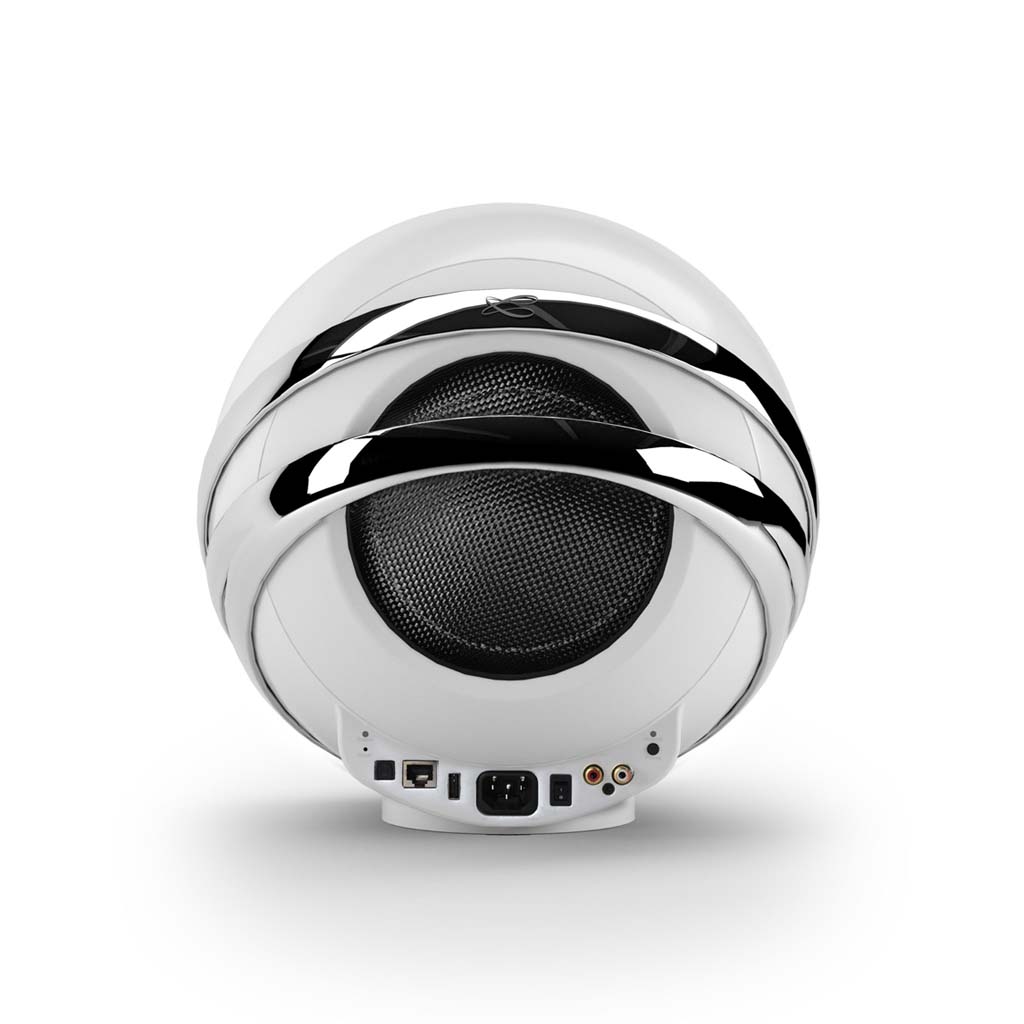 A decorative French-designed speaker that is unique yet faithful to the brand’s trademark aesthetics, evoking purity and power, The Pearl Connected Speaker is equipped with the most efficient materials. Its membranes are built from carbon fiber and fiberglass, the dissipators and drivers from aluminum and it has a reinforced composite fiber double-shell adorned with pure “Chromium” rings. A metal grid covers the front. It is available in a metallic black or pearl white finish.